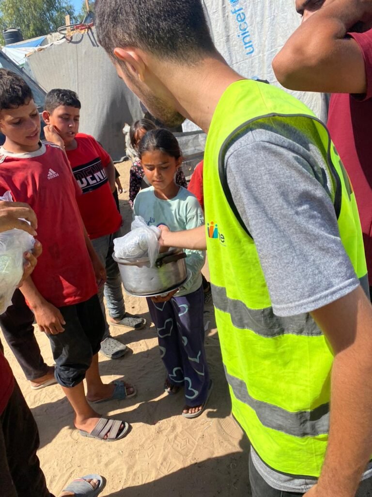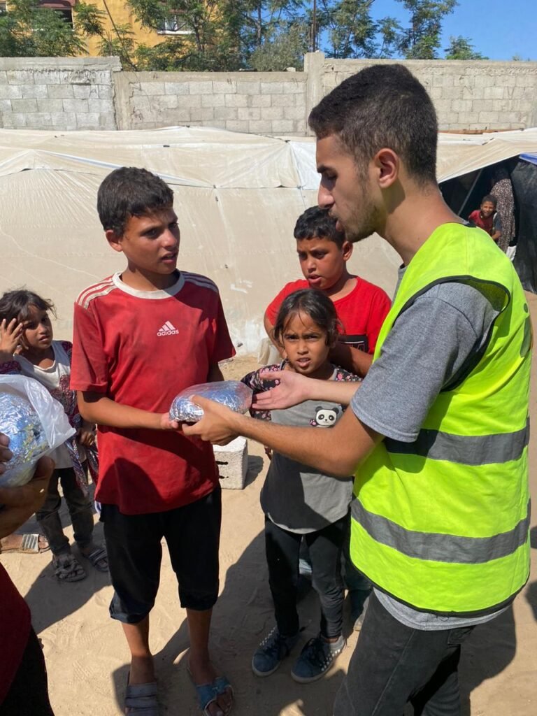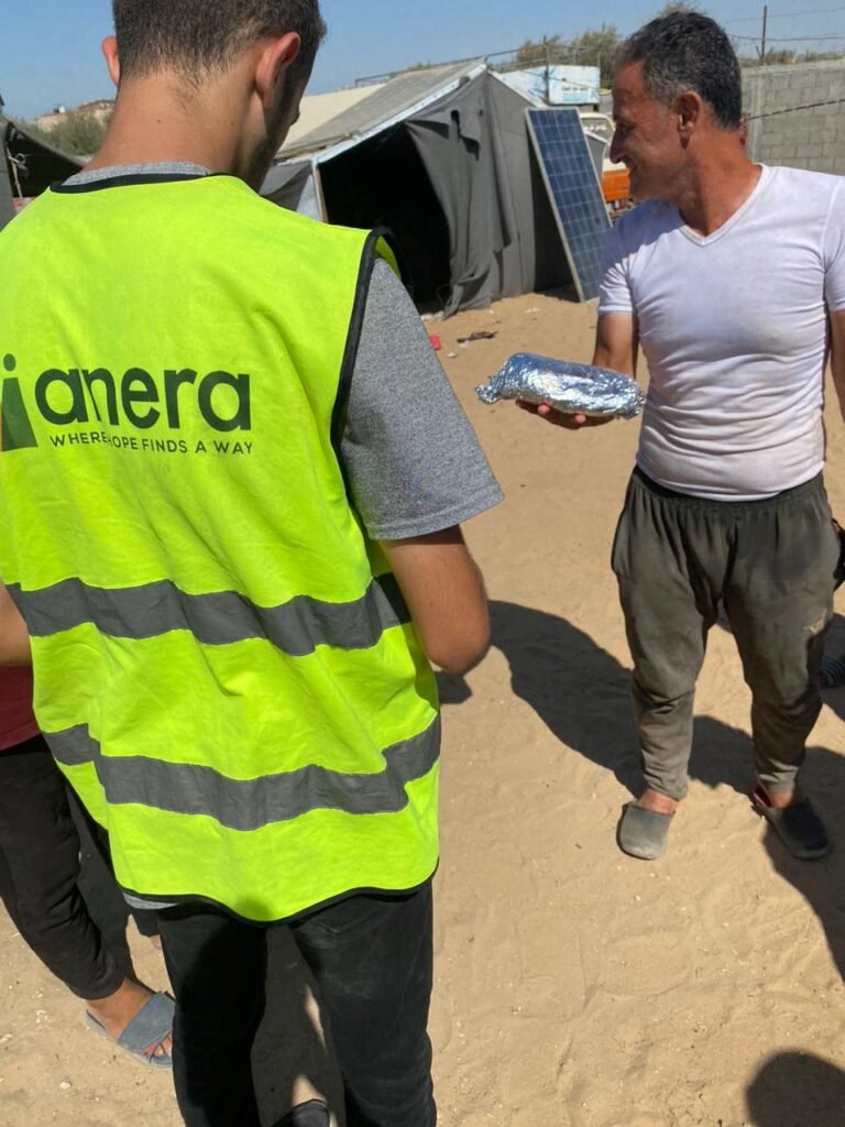 الهيئة الأهلية الفلسطينية ومؤسسة أنيرا توزعان وجبات غذائية على النازحين المتأثرين بالحرب