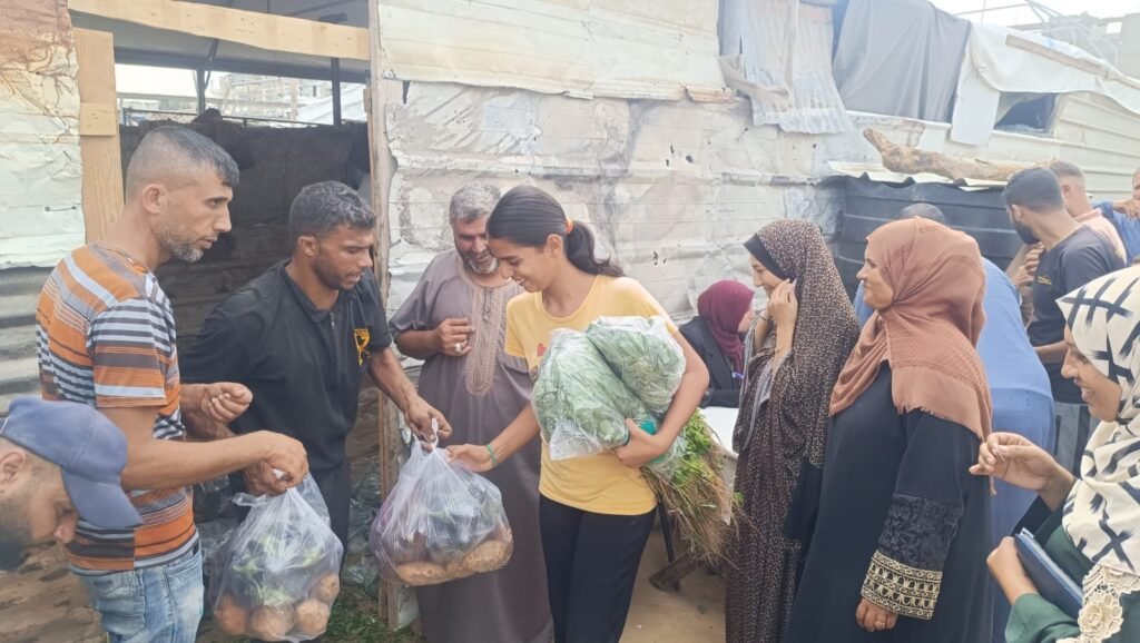 ضمن جهود الشراكة المستمرة بين الهيئة الأهلية الفلسطينية ومؤسسة أنيرا: توزيع سلال خضار طازجة على النازحين في غزة