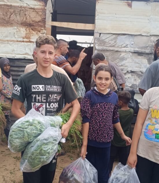ضمن جهود الشراكة المستمرة بين الهيئة الأهلية الفلسطينية ومؤسسة أنيرا: توزيع سلال خضار طازجة على النازحين في غزة