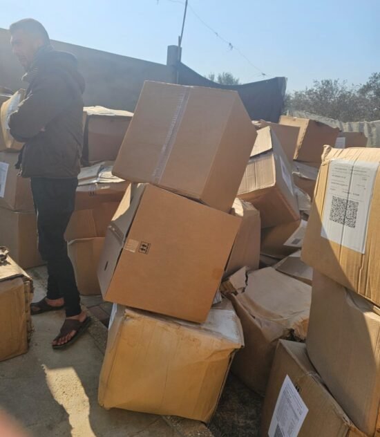 الهيئة الأهلية الفلسطينية توزع كراتين منظفات على النازحين بالتعاون مع مؤسسة أنيرا